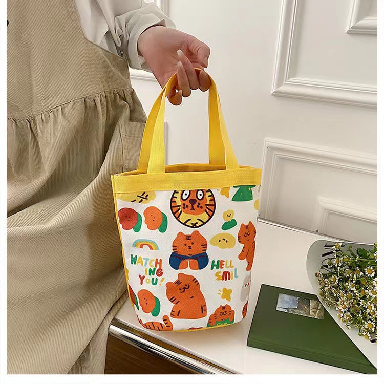 Cute Graffiti Ins Printing Cylinder Canvas Bucket Bag