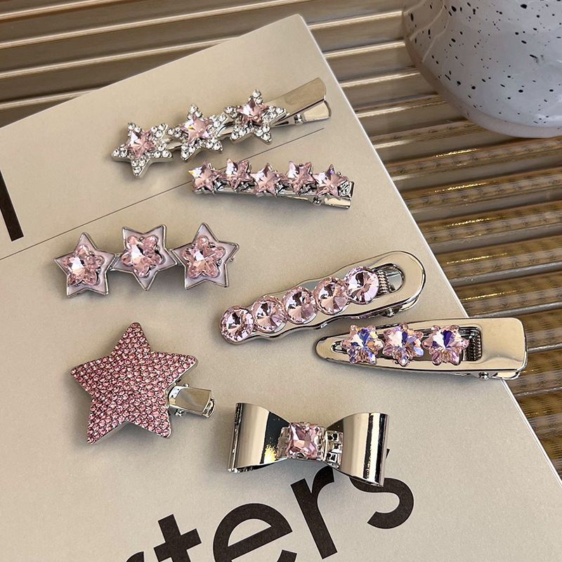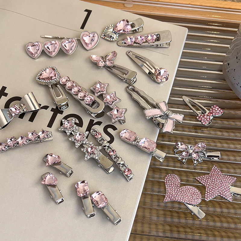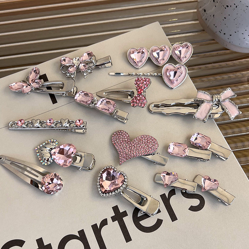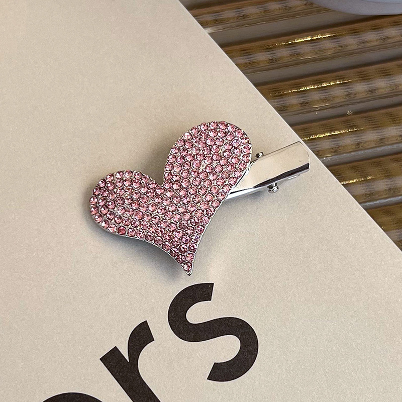 Heart Shape Rhinestone Side Bang Clip Sweet Cool Girl Metal Barrettes