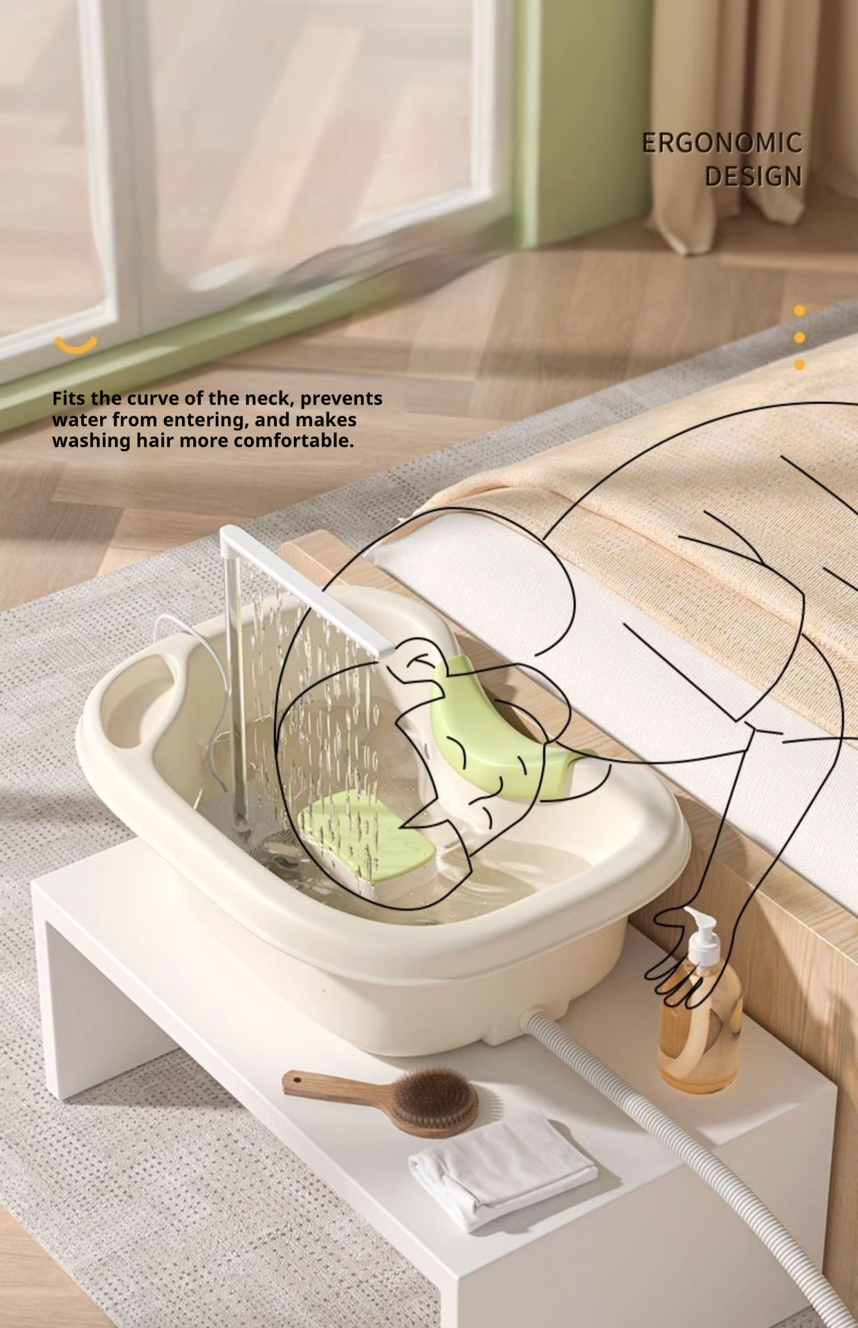 Color: light pink head pad neck pillow circulating water pump (drain pipe Bailer massage brush), beige head pad neck pillow circulating water pump (drain pipe Bailer massage brush)