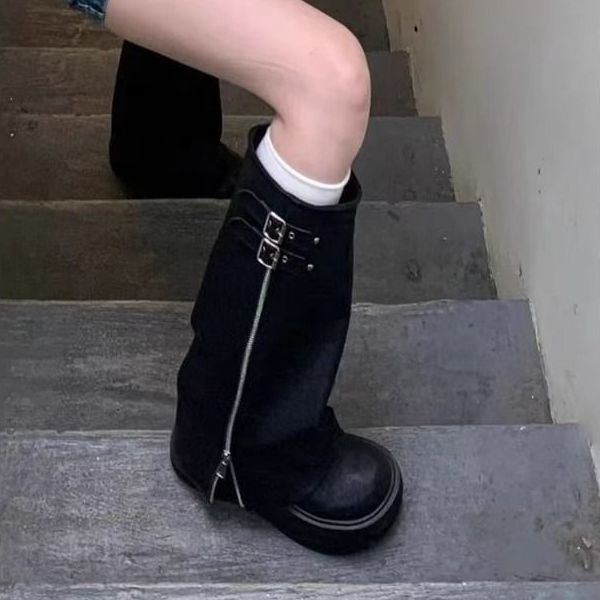 Womens Vintage High-rise Denim Boots